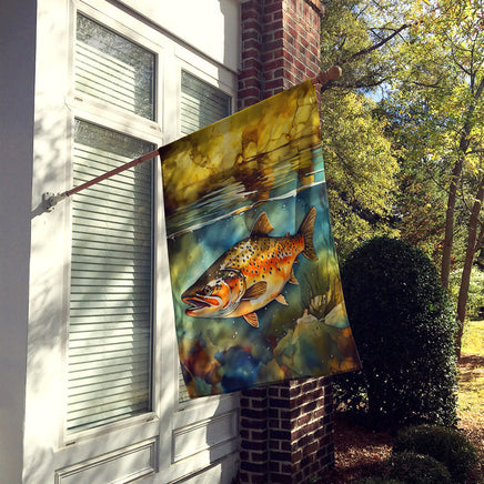 Decorate your space with Caroline's Treasures Brown Trout artwork on a Large Flag. Presenting Caroline's Treasures Heavy Duty Polyester House Size Decorative Sleeve Pole Flag, a vibrant addition to enhance the aesthetic appeal of your home. This large decorative flag, measuring approximately 28 x 40 inches, offers ample coverage and visibility. Each flag is meticulously sewn and made individually, ensuring a unique piece that may slightly vary in size. It's a sleeve pole flag, designed to fit a standard decorative flag pole effortlessly. Please note that the flag pole and bracket are not included and should be purchased separately. What sets Caroline's Treasures flag apart is its dual-sided print. The design is mirrored on both sides of the fabric, allowing for uniform visibility regardless of the angle. To ensure lasting vibrancy and durability, the dyes are heat-set into the fabric. This ensures your flag remains bright and captivating through various weather conditions. Elevate the look of your home with Caroline's Treasures Heavy Duty Polyester House Size Decorative Sleeve Pole Flag!