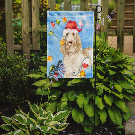 Decorate your space with Caroline's Treasures Christmas Spinone Italiano artwork on a Garden Flag. Enhance the beauty of your garden, patio, or yard with Caroline's Treasures Decorative Garden Flag, proudly made in the USA. Crafted from two pieces of thick, double-sided polyester fabric, this 2-ply garden flag is designed to withstand various weather conditions, making it water-resistant and weatherproof. Featuring correctly readable words on both sides, this garden flag offers a delightful visual experience from any angle. With its heavier weight, it stands out among other garden flags, ensuring stability and durability even in wind, rain, and snow. Measuring approximately 11 1/4 inches by 15 1/2 inches, this flag allows you to personalize your outdoor decor. It comes with a 1 1/2-inch sleeve sewn in, allowing easy attachment to any standard garden flag stand or garden size porch hanger (sold separately). Make a statement in your outdoor space with Caroline's Treasures Decorative Garden Flag, a vibrant and high-quality flag that adds color and personality to your surroundings. Proudly made in the USA, it's a symbol of quality craftsmanship and attention to detail.