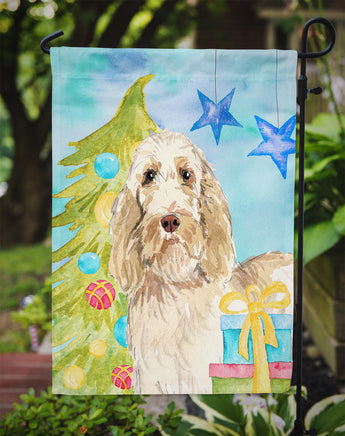 Decorate your space with Caroline's Treasures Christmas Spinone Italiano artwork on a Garden Flag. Enhance the beauty of your garden, patio, or yard with Caroline's Treasures Decorative Garden Flag, proudly made in the USA. Crafted from two pieces of thick, double-sided polyester fabric, this 2-ply garden flag is designed to withstand various weather conditions, making it water-resistant and weatherproof. Featuring correctly readable words on both sides, this garden flag offers a delightful visual experience from any angle. With its heavier weight, it stands out among other garden flags, ensuring stability and durability even in wind, rain, and snow. Measuring approximately 11 1/4 inches by 15 1/2 inches, this flag allows you to personalize your outdoor decor. It comes with a 1 1/2-inch sleeve sewn in, allowing easy attachment to any standard garden flag stand or garden size porch hanger (sold separately). Make a statement in your outdoor space with Caroline's Treasures Decorative Garden Flag, a vibrant and high-quality flag that adds color and personality to your surroundings. Proudly made in the USA, it's a symbol of quality craftsmanship and attention to detail.
