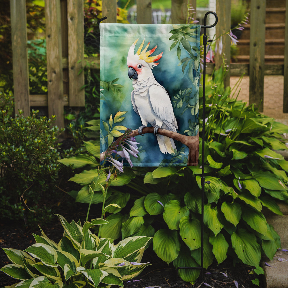 Garden Flag featuring breed specific Cockatoo artwork. Enhance the beauty of your garden, patio, or yard with Caroline's Treasures Decorative Garden Flag, proudly made in the USA. Crafted from two pieces of thick, double-sided polyester fabric, this 2-ply garden flag is designed to withstand various weather conditions, making it water-resistant and weatherproof. Featuring correctly readable words on both sides, this garden flag offers a delightful visual experience from any angle. With its heavier weight, it stands out among other garden flags, ensuring stability and durability even in wind, rain, and snow. Measuring approximately 11 1/4 inches by 15 1/2 inches, this flag allows you to personalize your outdoor decor. It comes with a 1 1/2-inch sleeve sewn in, allowing easy attachment to any standard garden flag stand or garden size porch hanger (sold separately). Make a statement in your outdoor space with Caroline's Treasures Decorative Garden Flag, a vibrant and high-quality flag that adds color and personality to your surroundings. Proudly made in the USA, it's a symbol of quality craftsmanship and attention to detail.