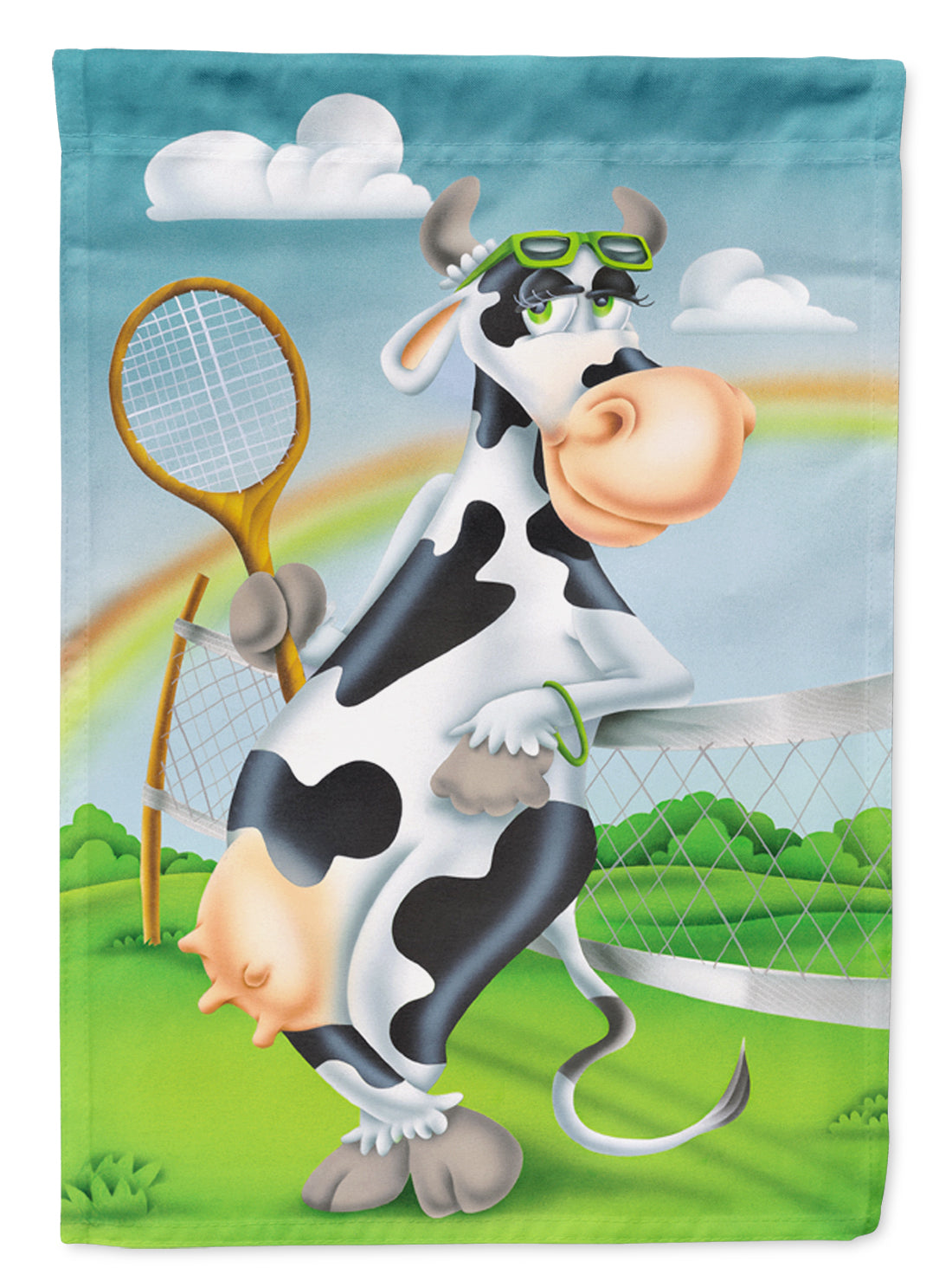 Cow playing Tennis Flag Garden Size APH0533GF
