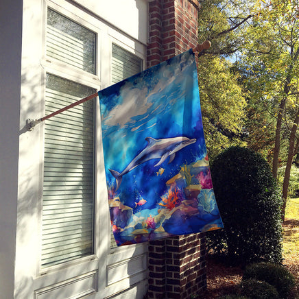 Decorate your space with Caroline's Treasures Dolphin artwork on a Large Flag. Presenting Caroline's Treasures Heavy Duty Polyester House Size Decorative Sleeve Pole Flag, a vibrant addition to enhance the aesthetic appeal of your home. This large decorative flag, measuring approximately 28 x 40 inches, offers ample coverage and visibility. Each flag is meticulously sewn and made individually, ensuring a unique piece that may slightly vary in size. It's a sleeve pole flag, designed to fit a standard decorative flag pole effortlessly. Please note that the flag pole and bracket are not included and should be purchased separately. What sets Caroline's Treasures flag apart is its dual-sided print. The design is mirrored on both sides of the fabric, allowing for uniform visibility regardless of the angle. To ensure lasting vibrancy and durability, the dyes are heat-set into the fabric. This ensures your flag remains bright and captivating through various weather conditions. Elevate the look of your home with Caroline's Treasures Heavy Duty Polyester House Size Decorative Sleeve Pole Flag!