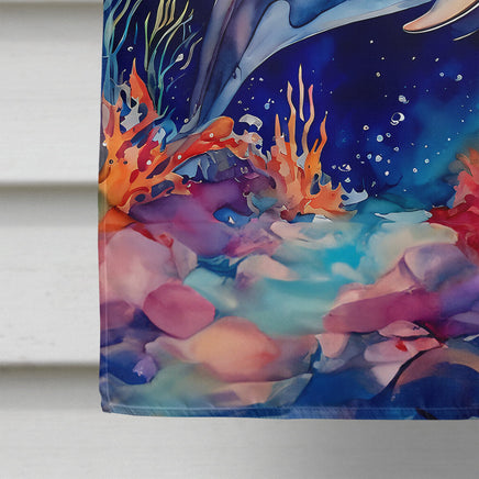 Decorate your space with Caroline's Treasures Dolphin artwork on a Large Flag. Presenting Caroline's Treasures Heavy Duty Polyester House Size Decorative Sleeve Pole Flag, a vibrant addition to enhance the aesthetic appeal of your home. This large decorative flag, measuring approximately 28 x 40 inches, offers ample coverage and visibility. Each flag is meticulously sewn and made individually, ensuring a unique piece that may slightly vary in size. It's a sleeve pole flag, designed to fit a standard decorative flag pole effortlessly. Please note that the flag pole and bracket are not included and should be purchased separately. What sets Caroline's Treasures flag apart is its dual-sided print. The design is mirrored on both sides of the fabric, allowing for uniform visibility regardless of the angle. To ensure lasting vibrancy and durability, the dyes are heat-set into the fabric. This ensures your flag remains bright and captivating through various weather conditions. Elevate the look of your home with Caroline's Treasures Heavy Duty Polyester House Size Decorative Sleeve Pole Flag!