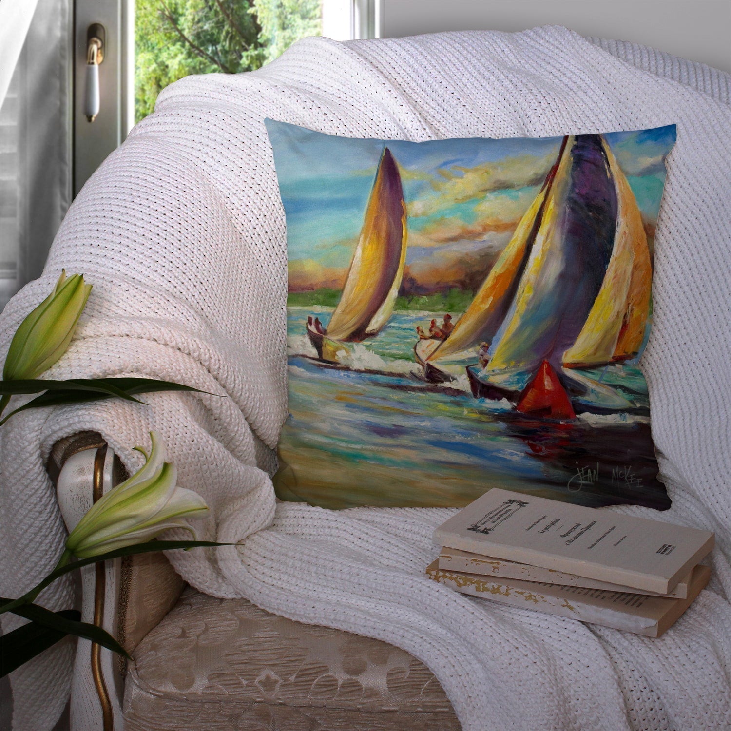 Knost Reggata Sailboats Canvas Fabric Decorative Pillow JMK1236PW1414