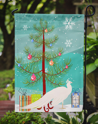 Decorate your space with Caroline's Treasures Christmas White Peacock Peafowl artwork on a Garden Flag. Enhance the beauty of your garden, patio, or yard with Caroline's Treasures Decorative Garden Flag, proudly made in the USA. Crafted from two pieces of thick, double-sided polyester fabric, this 2-ply garden flag is designed to withstand various weather conditions, making it water-resistant and weatherproof. Featuring correctly readable words on both sides, this garden flag offers a delightful visual experience from any angle. With its heavier weight, it stands out among other garden flags, ensuring stability and durability even in wind, rain, and snow. Measuring approximately 11 1/4 inches by 15 1/2 inches, this flag allows you to personalize your outdoor decor. It comes with a 1 1/2-inch sleeve sewn in, allowing easy attachment to any standard garden flag stand or garden size porch hanger (sold separately). Make a statement in your outdoor space with Caroline's Treasures Decorative Garden Flag, a vibrant and high-quality flag that adds color and personality to your surroundings. Proudly made in the USA, it's a symbol of quality craftsmanship and attention to detail.