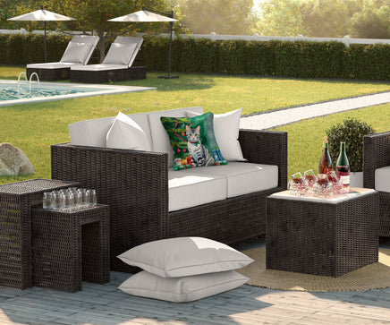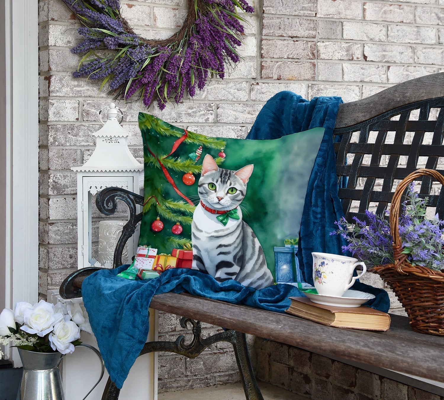 Throw Pillow featuring breed specific American Shorthair artwork. Celebrate Christmas with this Christmas Pillow. Revitalize your outdoor or indoor living space with Caroline's Treasures 18x18 Fabric Decorative Pillow. With a generously sized dimension of approximately 18 inches by 18 inches, this pillow makes a comfortable and aesthetic addition to any seating area. Made from a unique, water-resistant material developed by Caroline's Treasures, the pillow sham is 100% polyester fabric that's durable and ready to weather any condition. Its vibrant, full-color artwork will not fade over time as it is dyed with color-fast dyes. Whether you place it on your patio furniture, porch, veranda, or indoor couch, its soft canvas fabric ensures a cozy experience. The pillow is handcrafted in the United States, featuring a sham created from three pieces of fabric and a polyester insert for enduring shape and overstuffed comfort. Despite being robustly built to endure the outdoors, it is as soft and snug as your favorite indoor cushions. Please note, as all Caroline's Treasures pillows are handmade, sizes may vary slightly, adding to the charm of this unique decorative item.