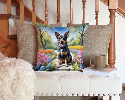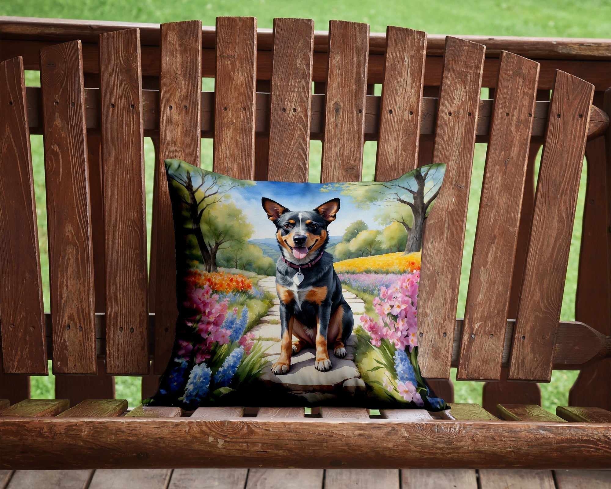 Decorate your space with Caroline's Treasures Australian Cattle Dog artwork on a Pillow. Bring a bit of Spring into your home with a Spring Pillow. Add a touch of vibrancy and comfort to your outdoor seating with Caroline's Treasures Fabric Decorative Pillow. Measuring approximately 14 inches by 14 inches, this outdoor pillow is crafted to elevate the appeal of your patio furniture, infusing it with vivid color and artistic flair. The pillow includes a 100% Polyester Fabric sham filled with a quality pillow form to provide superior comfort. Innovatively made from Caroline's Treasures brand new material, specifically woven for its water resistance, this pillow is designed for durability. The soft canvas fabric offers versatility in use, fit for your indoor couch or your outdoor patio, porch, or veranda. The fabric is dyed with colorfast dyes built for resilience against weather conditions, ensuring the pillow retains its beauty over time. Constructed by sewing three fabric pieces to create a sham, the polyester insert is then nestled inside to form the pillow, resulting in an overstuffed pillow that maintains its shape. Both the sham and the pillow insert are proudly made in the United States. As the pillows are handcrafted, there may be minor variations in size, further enhancing their unique charm. Experience comfort in style with Caroline's Treasures Fabric Decorative Pillow.