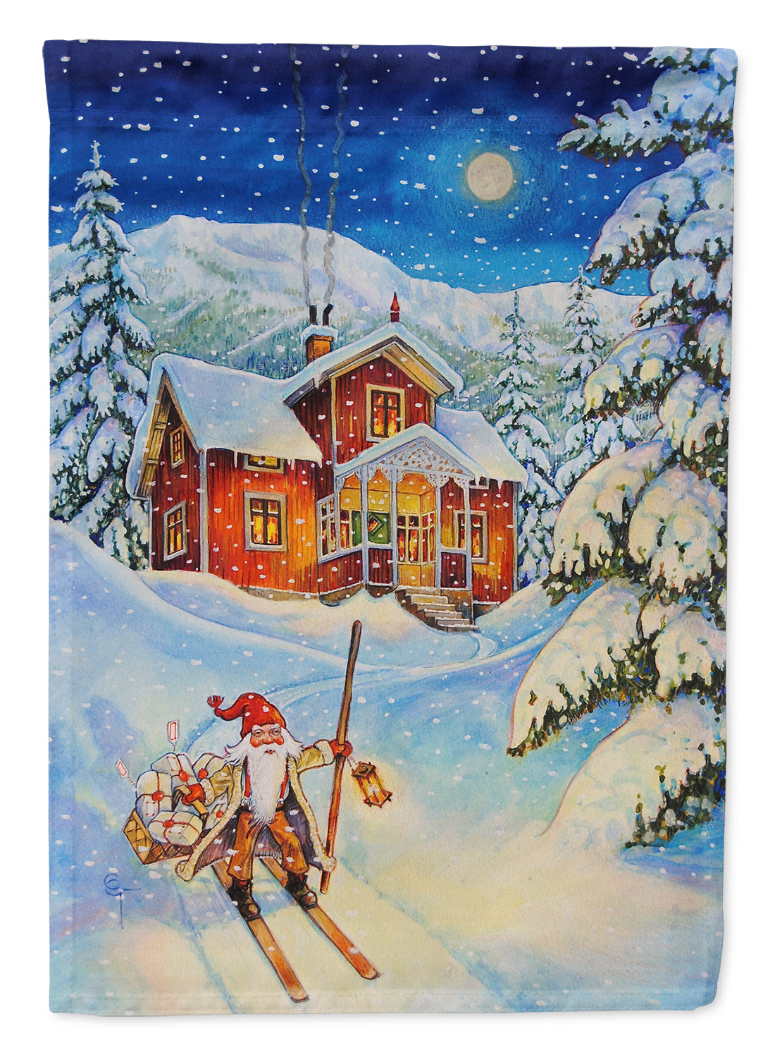 Decorate your space with Caroline's Treasures Christmas artwork on a Garden Flag. Enhance the beauty of your garden, patio, or yard with Caroline's Treasures Decorative Garden Flag, proudly made in the USA. Crafted from two pieces of thick, double-sided polyester fabric, this 2-ply garden flag is designed to withstand various weather conditions, making it water-resistant and weatherproof. Featuring correctly readable words on both sides, this garden flag offers a delightful visual experience from any angle. With its heavier weight, it stands out among other garden flags, ensuring stability and durability even in wind, rain, and snow. Measuring approximately 11 1/4 inches by 15 1/2 inches, this flag allows you to personalize your outdoor decor. It comes with a 1 1/2-inch sleeve sewn in, allowing easy attachment to any standard garden flag stand or garden size porch hanger (sold separately). Make a statement in your outdoor space with Caroline's Treasures Decorative Garden Flag, a vibrant and high-quality flag that adds color and personality to your surroundings. Proudly made in the USA, it's a symbol of quality craftsmanship and attention to detail.