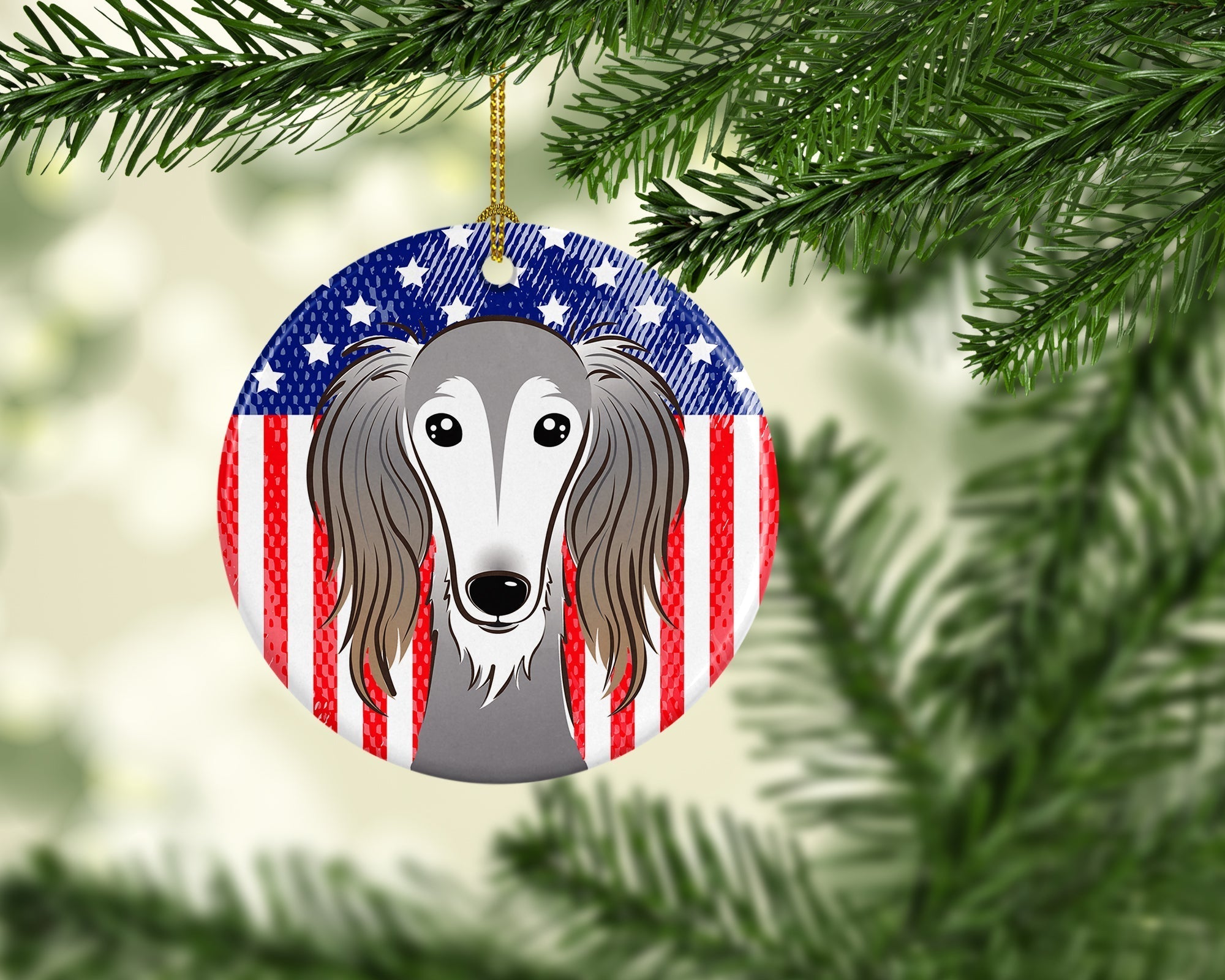 Decorate your space with Caroline's Treasures Saluki artwork on a Ornament. Add a touch of personalized charm to your Christmas tree this holiday season with Caroline's Treasures Ceramic Ornament. Measuring 2.8125 inches in diameter, this round porcelain ornament beautifully reflects your festive lights, enhancing your holiday decor. The gloss surface sets off the vibrant, full-color artwork contributed by one of Caroline's Treasures talented artists, bringing a pop of color and joy to your tree. This Ceramic Ornament doesn't stop at being merely decorative. The white back is designed for personalization. Write a heartfelt message, mark a special year, or inscribe a date with a paint pen or a permanent marker to create a treasured memento. Please ensure you allow any personalization to dry thoroughly before handling to maintain the pristine finish. Included with the ornament is a delicate gold cord for easy hanging. Made in the USA, this Ceramic Ornament makes an exceptional gift for a pet sitter, teacher, family member, or anyone you wish to share a little Christmas magic with. With its blend of style, charm, and personal touch, it's a meaningful addition to any Christmas tree.