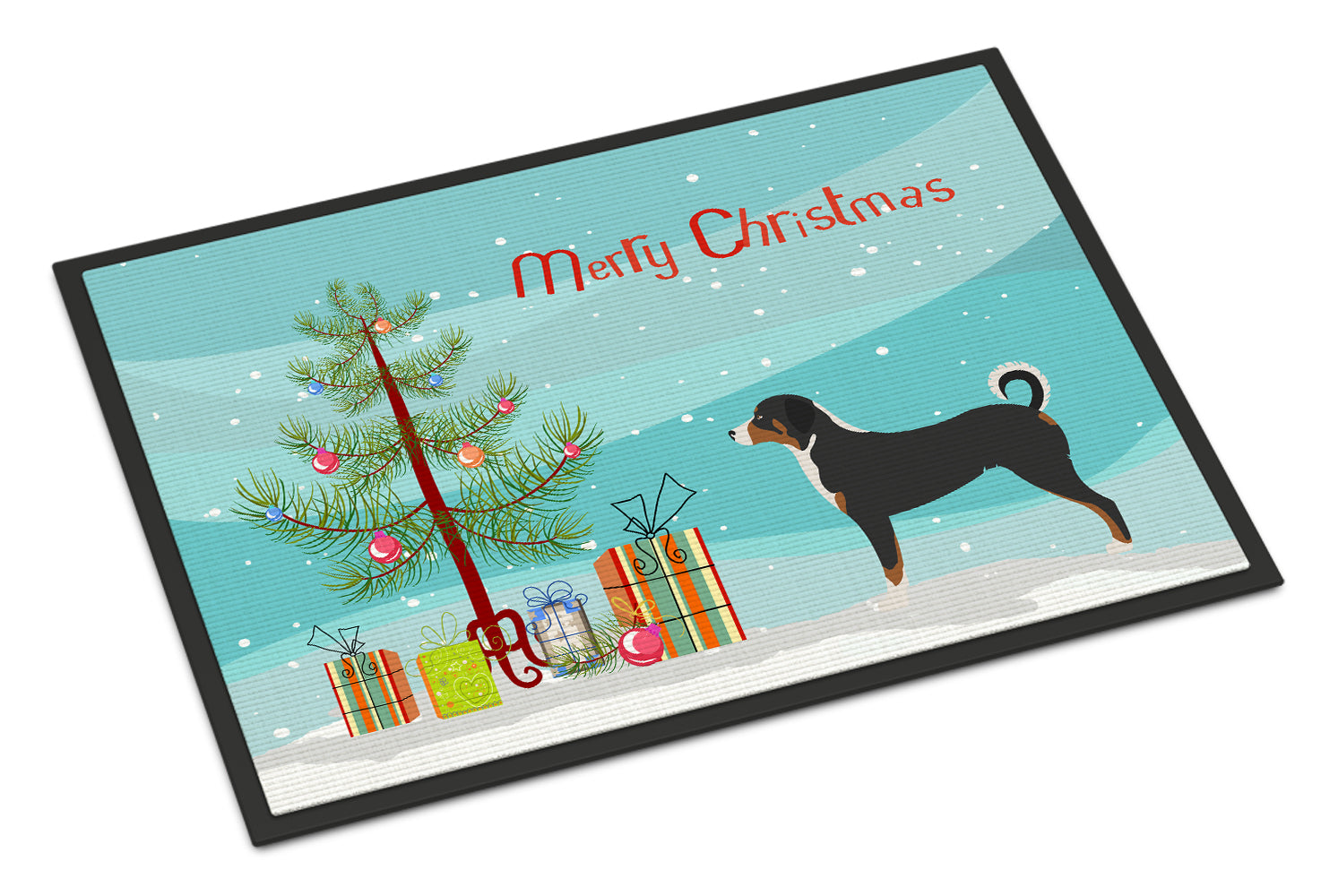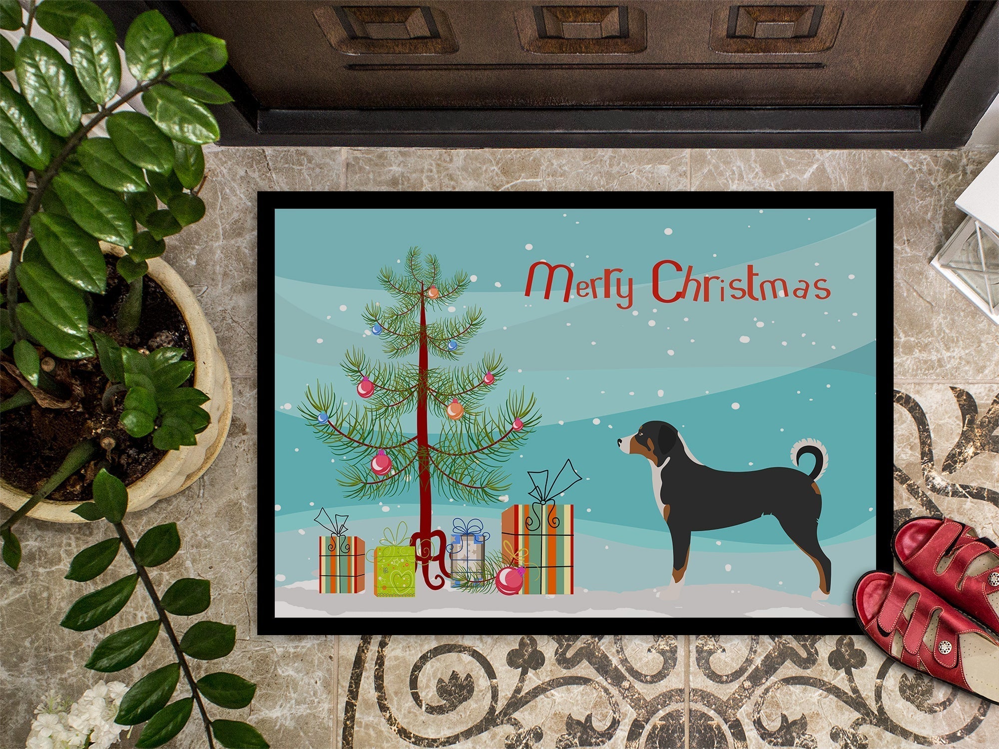 Decorate your space with Caroline's Treasures Christmas Appenzeller Sennenhund artwork on a Doormat. Welcome your guests in style with Caroline's Treasures Artwork Door Mat, designed to withstand almost any weather condition. This mat, measuring approximately 24 by 36 inches, is held together by durable black binding tape. Its top layer, composed of polyester felt, is dyed with the eye-catching image you see on the mat. A few layers below provide the mat with stability, while its rubber bottom is stamped to help prevent slipping and ensures safety. Caroline's Treasures mat works wonderfully as both an indoor or outdoor door mat. For cleaning, simply hose it off with water or use a power washer - no need for any cleaner that produces suds. Avoid scrubbing with a brush, instead, opt for the vacuum on floor setting. Designed manufactured and printed in the USA, this mat is a perfect addition to your porch, outdoor kitchen, entryway, or any indoor space. Its unique design makes it a charming decorative rug that greets your guests and adds a stylish touch to your home decor.
