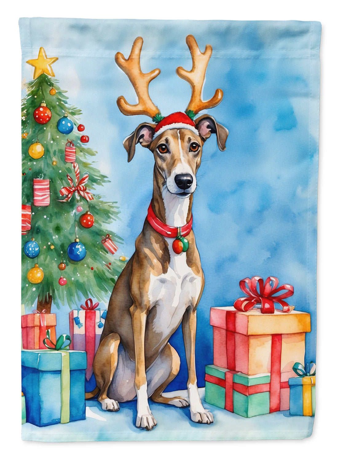Garden Flag featuring breed specific Greyhound artwork. Celebrate Christmas with this Christmas Garden Flag. Enhance the beauty of your garden, patio, or yard with Caroline's Treasures Decorative Garden Flag, proudly made in the USA. Crafted from two pieces of thick, double-sided polyester fabric, this 2-ply garden flag is designed to withstand various weather conditions, making it water-resistant and weatherproof. Featuring correctly readable words on both sides, this garden flag offers a delightful visual experience from any angle. With its heavier weight, it stands out among other garden flags, ensuring stability and durability even in wind, rain, and snow. Measuring approximately 11 1/4 inches by 15 1/2 inches, this flag allows you to personalize your outdoor decor. It comes with a 1 1/2-inch sleeve sewn in, allowing easy attachment to any standard garden flag stand or garden size porch hanger (sold separately). Make a statement in your outdoor space with Caroline's Treasures Decorative Garden Flag, a vibrant and high-quality flag that adds color and personality to your surroundings. Proudly made in the USA, it's a symbol of quality craftsmanship and attention to detail.