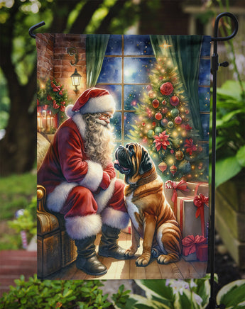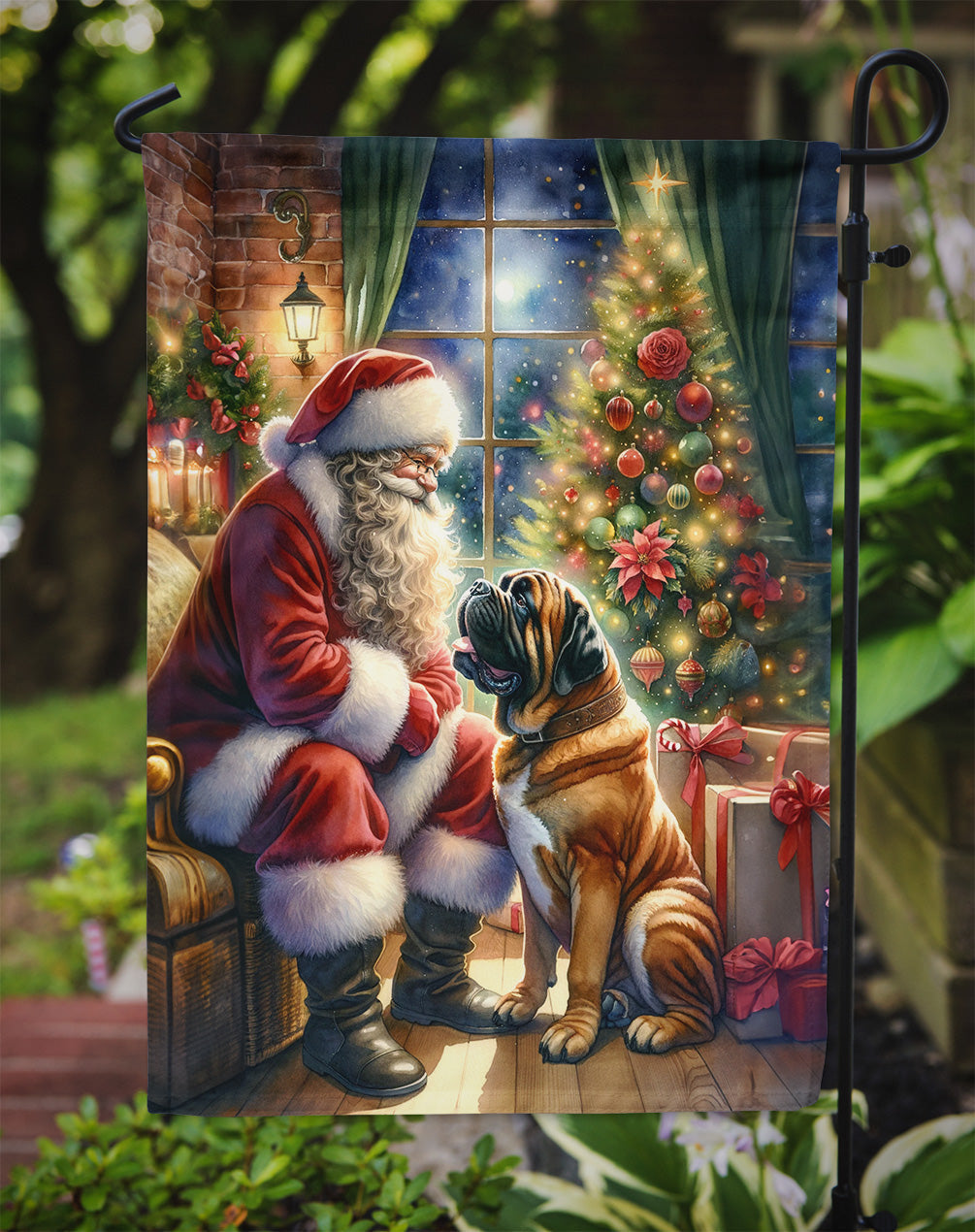 Bring a festive, canine-inspired charm to your garden with this breed specific dog and Santa Claus Garden Flag. Featuring a heartwarming ‘Moments with Santa Claus’ scene, this durable, weather-resistant flag is perfect for any dog lover’s holiday decor. Whether for personal use or as a thoughtful gift, this festive yard flag adds a cozy, seasonal touch to any outdoor space. Ideal for pet-friendly homes, it captures the holiday spirit while showcasing your love for dogs. Decorate your space with Caroline's Treasures Christmas Bullmastiff artwork on a Garden Flag. Enhance the beauty of your garden, patio, or yard with Caroline's Treasures Decorative Garden Flag, proudly made in the USA. Crafted from two pieces of thick, double-sided polyester fabric, this 2-ply garden flag is designed to withstand various weather conditions, making it water-resistant and weatherproof. Featuring correctly readable words on both sides, this garden flag offers a delightful visual experience from any angle. With its heavier weight, it stands out among other garden flags, ensuring stability and durability even in wind, rain, and snow. Measuring approximately 11 1/4 inches by 15 1/2 inches, this flag allows you to personalize your outdoor decor. It comes with a 1 1/2-inch sleeve sewn in, allowing easy attachment to any standard garden flag stand or garden size porch hanger (sold separately). Make a statement in your outdoor space with Caroline's Treasures Decorative Garden Flag, a vibrant and high-quality flag that adds color and personality to your surroundings. Proudly made in the USA, it's a symbol of quality craftsmanship and attention to detail.
