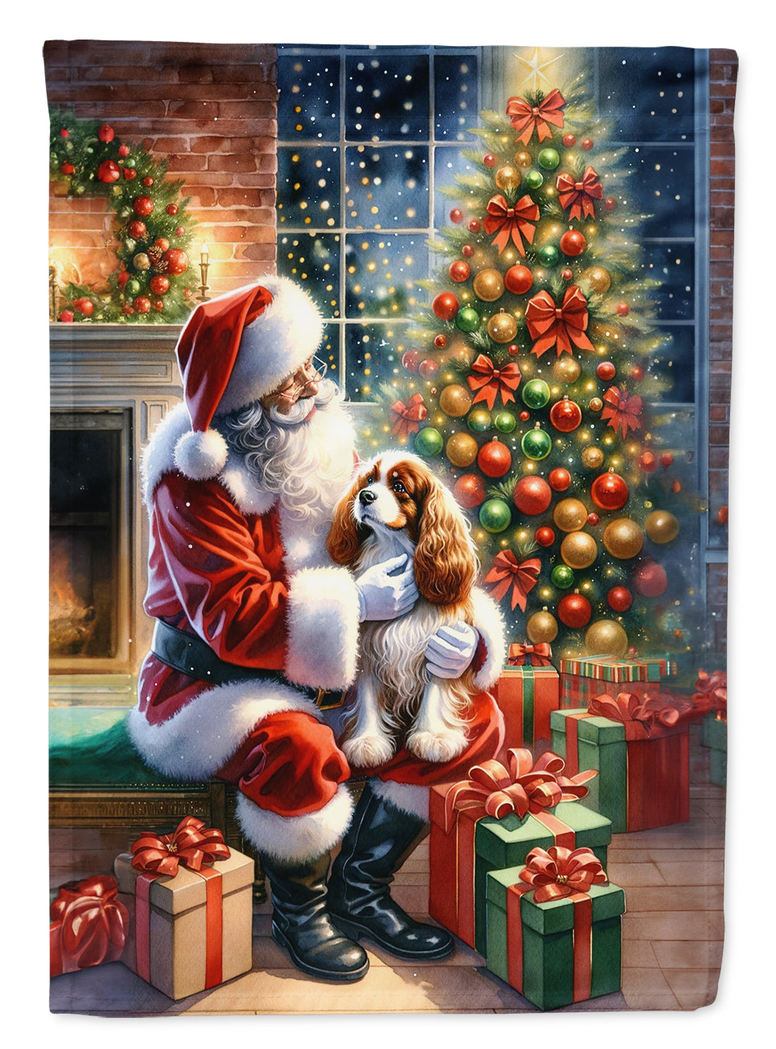 Bring a festive, canine-inspired charm to your garden with this breed specific dog and Santa Claus Garden Flag. Featuring a heartwarming ‘Moments with Santa Claus’ scene, this durable, weather-resistant flag is perfect for any dog lover’s holiday decor. Whether for personal use or as a thoughtful gift, this festive yard flag adds a cozy, seasonal touch to any outdoor space. Ideal for pet-friendly homes, it captures the holiday spirit while showcasing your love for dogs. Decorate your space with Caroline's Treasures Christmas Cavalier King Charles Spaniel artwork on a Garden Flag. Enhance the beauty of your garden, patio, or yard with Caroline's Treasures Decorative Garden Flag, proudly made in the USA. Crafted from two pieces of thick, double-sided polyester fabric, this 2-ply garden flag is designed to withstand various weather conditions, making it water-resistant and weatherproof. Featuring correctly readable words on both sides, this garden flag offers a delightful visual experience from any angle. With its heavier weight, it stands out among other garden flags, ensuring stability and durability even in wind, rain, and snow. Measuring approximately 11 1/4 inches by 15 1/2 inches, this flag allows you to personalize your outdoor decor. It comes with a 1 1/2-inch sleeve sewn in, allowing easy attachment to any standard garden flag stand or garden size porch hanger (sold separately). Make a statement in your outdoor space with Caroline's Treasures Decorative Garden Flag, a vibrant and high-quality flag that adds color and personality to your surroundings. Proudly made in the USA, it's a symbol of quality craftsmanship and attention to detail.