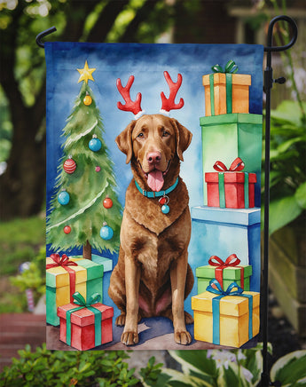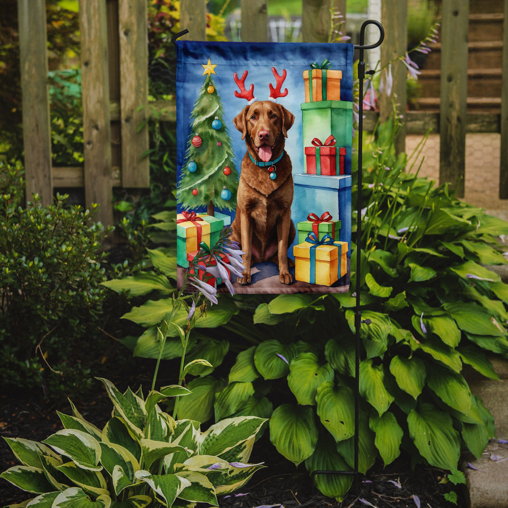 Garden Flag featuring breed specific Chesapeake Bay Retriever artwork. Celebrate Christmas with this Christmas Garden Flag. Enhance the beauty of your garden, patio, or yard with Caroline's Treasures Decorative Garden Flag, proudly made in the USA. Crafted from two pieces of thick, double-sided polyester fabric, this 2-ply garden flag is designed to withstand various weather conditions, making it water-resistant and weatherproof. Featuring correctly readable words on both sides, this garden flag offers a delightful visual experience from any angle. With its heavier weight, it stands out among other garden flags, ensuring stability and durability even in wind, rain, and snow. Measuring approximately 11 1/4 inches by 15 1/2 inches, this flag allows you to personalize your outdoor decor. It comes with a 1 1/2-inch sleeve sewn in, allowing easy attachment to any standard garden flag stand or garden size porch hanger (sold separately). Make a statement in your outdoor space with Caroline's Treasures Decorative Garden Flag, a vibrant and high-quality flag that adds color and personality to your surroundings. Proudly made in the USA, it's a symbol of quality craftsmanship and attention to detail.