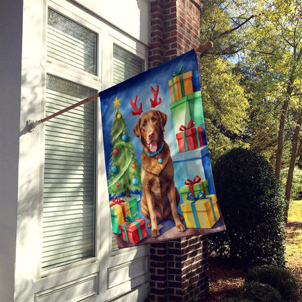 House Flag featuring breed specific Chesapeake Bay Retriever artwork. Celebrate Christmas with this Christmas Large Flag. Presenting Caroline's Treasures Heavy Duty Polyester House Size Decorative Sleeve Pole Flag, a vibrant addition to enhance the aesthetic appeal of your home. This large decorative flag, measuring approximately 28 x 40 inches, offers ample coverage and visibility. Each flag is meticulously sewn and made individually, ensuring a unique piece that may slightly vary in size. It's a sleeve pole flag, designed to fit a standard decorative flag pole effortlessly. Please note that the flag pole and bracket are not included and should be purchased separately. What sets Caroline's Treasures flag apart is its dual-sided print. The design is mirrored on both sides of the fabric, allowing for uniform visibility regardless of the angle. To ensure lasting vibrancy and durability, the dyes are heat-set into the fabric. This ensures your flag remains bright and captivating through various weather conditions. Elevate the look of your home with Caroline's Treasures Heavy Duty Polyester House Size Decorative Sleeve Pole Flag!