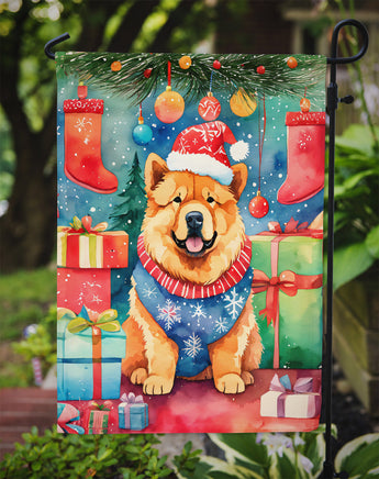 Decorate your space with Caroline's Treasures Christmas Chow Chow artwork on a Garden Flag. Enhance the beauty of your garden, patio, or yard with Caroline's Treasures Decorative Garden Flag, proudly made in the USA. Crafted from two pieces of thick, double-sided polyester fabric, this 2-ply garden flag is designed to withstand various weather conditions, making it water-resistant and weatherproof. Featuring correctly readable words on both sides, this garden flag offers a delightful visual experience from any angle. With its heavier weight, it stands out among other garden flags, ensuring stability and durability even in wind, rain, and snow. Measuring approximately 11 1/4 inches by 15 1/2 inches, this flag allows you to personalize your outdoor decor. It comes with a 1 1/2-inch sleeve sewn in, allowing easy attachment to any standard garden flag stand or garden size porch hanger (sold separately). Make a statement in your outdoor space with Caroline's Treasures Decorative Garden Flag, a vibrant and high-quality flag that adds color and personality to your surroundings. Proudly made in the USA, it's a symbol of quality craftsmanship and attention to detail.