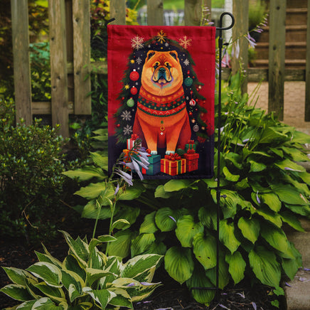 Decorate your space with Caroline's Treasures Christmas Chow Chow artwork on a Garden Flag. Enhance the beauty of your garden, patio, or yard with Caroline's Treasures Decorative Garden Flag, proudly made in the USA. Crafted from two pieces of thick, double-sided polyester fabric, this 2-ply garden flag is designed to withstand various weather conditions, making it water-resistant and weatherproof. Featuring correctly readable words on both sides, this garden flag offers a delightful visual experience from any angle. With its heavier weight, it stands out among other garden flags, ensuring stability and durability even in wind, rain, and snow. Measuring approximately 11 1/4 inches by 15 1/2 inches, this flag allows you to personalize your outdoor decor. It comes with a 1 1/2-inch sleeve sewn in, allowing easy attachment to any standard garden flag stand or garden size porch hanger (sold separately). Make a statement in your outdoor space with Caroline's Treasures Decorative Garden Flag, a vibrant and high-quality flag that adds color and personality to your surroundings. Proudly made in the USA, it's a symbol of quality craftsmanship and attention to detail.