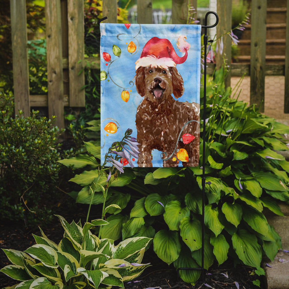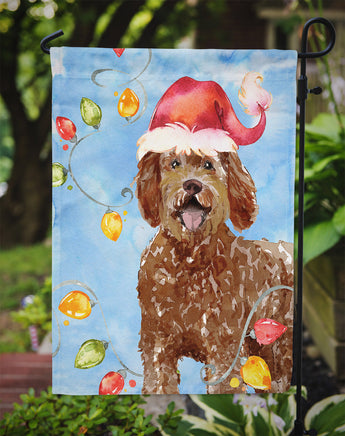 Decorate your space with Caroline's Treasures Christmas Labradoodle artwork on a Garden Flag. Enhance the beauty of your garden, patio, or yard with Caroline's Treasures Decorative Garden Flag, proudly made in the USA. Crafted from two pieces of thick, double-sided polyester fabric, this 2-ply garden flag is designed to withstand various weather conditions, making it water-resistant and weatherproof. Featuring correctly readable words on both sides, this garden flag offers a delightful visual experience from any angle. With its heavier weight, it stands out among other garden flags, ensuring stability and durability even in wind, rain, and snow. Measuring approximately 11 1/4 inches by 15 1/2 inches, this flag allows you to personalize your outdoor decor. It comes with a 1 1/2-inch sleeve sewn in, allowing easy attachment to any standard garden flag stand or garden size porch hanger (sold separately). Make a statement in your outdoor space with Caroline's Treasures Decorative Garden Flag, a vibrant and high-quality flag that adds color and personality to your surroundings. Proudly made in the USA, it's a symbol of quality craftsmanship and attention to detail.