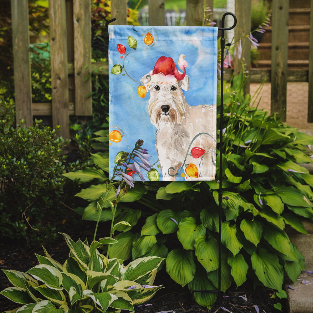 Decorate your space with Caroline's Treasures Christmas Wheaten Terrier artwork on a Garden Flag. Enhance the beauty of your garden, patio, or yard with Caroline's Treasures Decorative Garden Flag, proudly made in the USA. Crafted from two pieces of thick, double-sided polyester fabric, this 2-ply garden flag is designed to withstand various weather conditions, making it water-resistant and weatherproof. Featuring correctly readable words on both sides, this garden flag offers a delightful visual experience from any angle. With its heavier weight, it stands out among other garden flags, ensuring stability and durability even in wind, rain, and snow. Measuring approximately 11 1/4 inches by 15 1/2 inches, this flag allows you to personalize your outdoor decor. It comes with a 1 1/2-inch sleeve sewn in, allowing easy attachment to any standard garden flag stand or garden size porch hanger (sold separately). Make a statement in your outdoor space with Caroline's Treasures Decorative Garden Flag, a vibrant and high-quality flag that adds color and personality to your surroundings. Proudly made in the USA, it's a symbol of quality craftsmanship and attention to detail.