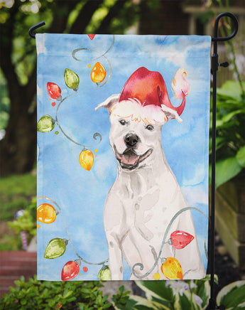 Decorate your space with Caroline's Treasures Christmas Staffordshire Bull Terrier artwork on a Garden Flag. Enhance the beauty of your garden, patio, or yard with Caroline's Treasures Decorative Garden Flag, proudly made in the USA. Crafted from two pieces of thick, double-sided polyester fabric, this 2-ply garden flag is designed to withstand various weather conditions, making it water-resistant and weatherproof. Featuring correctly readable words on both sides, this garden flag offers a delightful visual experience from any angle. With its heavier weight, it stands out among other garden flags, ensuring stability and durability even in wind, rain, and snow. Measuring approximately 11 1/4 inches by 15 1/2 inches, this flag allows you to personalize your outdoor decor. It comes with a 1 1/2-inch sleeve sewn in, allowing easy attachment to any standard garden flag stand or garden size porch hanger (sold separately). Make a statement in your outdoor space with Caroline's Treasures Decorative Garden Flag, a vibrant and high-quality flag that adds color and personality to your surroundings. Proudly made in the USA, it's a symbol of quality craftsmanship and attention to detail.