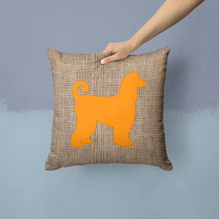 Afghan Hound Burlap and Orange Canvas Fabric Decorative Pillow BB1066