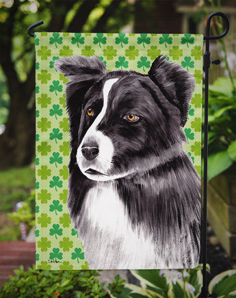 Border Collie St. Patrick's Day Shamrock Portrait Flag Garden Size