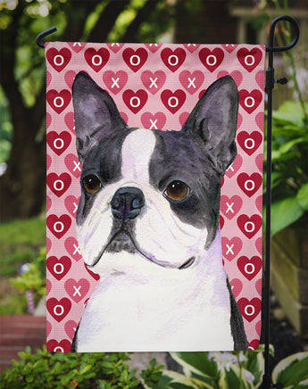 Decorate your space with Caroline's Treasures Valentine's Day Boston Terrier artwork on a Garden Flag. Enhance the beauty of your garden, patio, or yard with Caroline's Treasures Decorative Garden Flag, proudly made in the USA. Crafted from two pieces of thick, double-sided polyester fabric, this 2-ply garden flag is designed to withstand various weather conditions, making it water-resistant and weatherproof. Featuring correctly readable words on both sides, this garden flag offers a delightful visual experience from any angle. With its heavier weight, it stands out among other garden flags, ensuring stability and durability even in wind, rain, and snow. Measuring approximately 11 1/4 inches by 15 1/2 inches, this flag allows you to personalize your outdoor decor. It comes with a 1 1/2-inch sleeve sewn in, allowing easy attachment to any standard garden flag stand or garden size porch hanger (sold separately). Make a statement in your outdoor space with Caroline's Treasures Decorative Garden Flag, a vibrant and high-quality flag that adds color and personality to your surroundings. Proudly made in the USA, it's a symbol of quality craftsmanship and attention to detail.