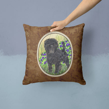 Decorate your space with Caroline's Treasures Affenpinscher artwork on a Pillow. Add a touch of vibrancy and comfort to your outdoor seating with Caroline's Treasures Fabric Decorative Pillow. Measuring approximately 14 inches by 14 inches, this outdoor pillow is crafted to elevate the appeal of your patio furniture, infusing it with vivid color and artistic flair. The pillow includes a 100% Polyester Fabric sham filled with a quality pillow form to provide superior comfort. Innovatively made from Caroline's Treasures brand new material, specifically woven for its water resistance, this pillow is designed for durability. The soft canvas fabric offers versatility in use, fit for your indoor couch or your outdoor patio, porch, or veranda. The fabric is dyed with colorfast dyes built for resilience against weather conditions, ensuring the pillow retains its beauty over time. Constructed by sewing three fabric pieces to create a sham, the polyester insert is then nestled inside to form the pillow, resulting in an overstuffed pillow that maintains its shape. Both the sham and the pillow insert are proudly made in the United States. As the pillows are handcrafted, there may be minor variations in size, further enhancing their unique charm. Experience comfort in style with Caroline's Treasures Fabric Decorative Pillow.