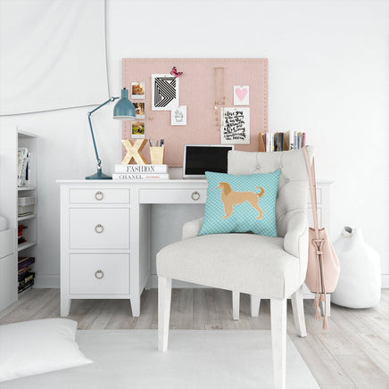 Afghan Hound Checkerboard Blue Fabric Decorative Pillow BB3706PW1414