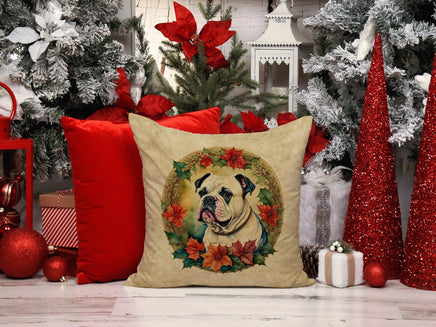 Decorate your space with Caroline's Treasures Christmas American Bulldog artwork on a Pillow. Bring a bit of Winter into your home with a Winter Pillow. Revitalize your outdoor or indoor living space with Caroline's Treasures 18x18 Fabric Decorative Pillow. With a generously sized dimension of approximately 18 inches by 18 inches, this pillow makes a comfortable and aesthetic addition to any seating area. Made from a unique, water-resistant material developed by Caroline's Treasures, the pillow sham is 100% polyester fabric that's durable and ready to weather any condition. Its vibrant, full-color artwork will not fade over time as it is dyed with color-fast dyes. Whether you place it on your patio furniture, porch, veranda, or indoor couch, its soft canvas fabric ensures a cozy experience. The pillow is handcrafted in the United States, featuring a sham created from three pieces of fabric and a polyester insert for enduring shape and overstuffed comfort. Despite being robustly built to endure the outdoors, it is as soft and snug as your favorite indoor cushions. Please note, as all Caroline's Treasures pillows are handmade, sizes may vary slightly, adding to the charm of this unique decorative item.