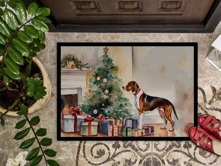 Decorate your space with Caroline's Treasures Christmas American English Coonhound artwork on a Doormat. Welcome your guests in style with Caroline's Treasures Artwork Door Mat, designed to withstand almost any weather condition. This mat, measuring approximately 24 by 36 inches, is held together by durable black binding tape. Its top layer, composed of polyester felt, is dyed with the eye-catching image you see on the mat. A few layers below provide the mat with stability, while its rubber bottom is stamped to help prevent slipping and ensures safety. Caroline's Treasures mat works wonderfully as both an indoor or outdoor door mat. For cleaning, simply hose it off with water or use a power washer - no need for any cleaner that produces suds. Avoid scrubbing with a brush, instead, opt for the vacuum on floor setting. Designed manufactured and printed in the USA, this mat is a perfect addition to your porch, outdoor kitchen, entryway, or any indoor space. Its unique design makes it a charming decorative rug that greets your guests and adds a stylish touch to your home decor.