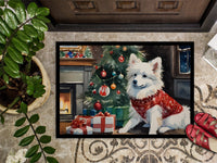 Decorate your space with Caroline's Treasures Christmas American Eskimo artwork on a Doormat. Welcome your guests in style with Caroline's Treasures Artwork Door Mat, designed to withstand almost any weather condition. This mat, measuring approximately 18 by 27 inches, is held together by durable black binding tape. Its top layer, composed of polyester felt, is dyed with the eye-catching image you see on the mat. A few layers below provide the mat with stability, while its rubber bottom is stamped to help prevent slipping and ensures safety. Caroline's Treasures mat works wonderfully as both an indoor or outdoor door mat. For cleaning, simply hose it off with water or use a power washer - no need for any cleaner that produces suds. Avoid scrubbing with a brush, instead, opt for the vacuum on floor setting. Designed manufactured and printed in the USA, this mat is a perfect addition to your porch, outdoor kitchen, entryway, or any indoor space. Its unique design makes it a charming decorative rug that greets your guests and adds a stylish touch to your home decor.