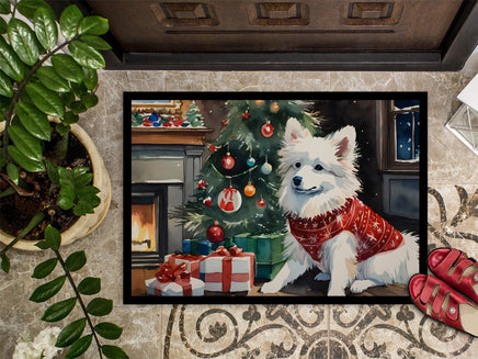 Decorate your space with Caroline's Treasures Christmas American Eskimo artwork on a Doormat. Welcome your guests in style with Caroline's Treasures Artwork Door Mat, designed to withstand almost any weather condition. This mat, measuring approximately 24 by 36 inches, is held together by durable black binding tape. Its top layer, composed of polyester felt, is dyed with the eye-catching image you see on the mat. A few layers below provide the mat with stability, while its rubber bottom is stamped to help prevent slipping and ensures safety. Caroline's Treasures mat works wonderfully as both an indoor or outdoor door mat. For cleaning, simply hose it off with water or use a power washer - no need for any cleaner that produces suds. Avoid scrubbing with a brush, instead, opt for the vacuum on floor setting. Designed manufactured and printed in the USA, this mat is a perfect addition to your porch, outdoor kitchen, entryway, or any indoor space. Its unique design makes it a charming decorative rug that greets your guests and adds a stylish touch to your home decor.