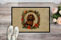 Decorate your space with Caroline's Treasures Christmas American Water Spaniel artwork on a Doormat. Bring a bit of Winter into your home with a Winter Doormat. Welcome your guests in style with Caroline's Treasures Artwork Door Mat, designed to withstand almost any weather condition. This mat, measuring approximately 24 by 36 inches, is held together by durable black binding tape. Its top layer, composed of polyester felt, is dyed with the eye-catching image you see on the mat. A few layers below provide the mat with stability, while its rubber bottom is stamped to help prevent slipping and ensures safety. Caroline's Treasures mat works wonderfully as both an indoor or outdoor door mat. For cleaning, simply hose it off with water or use a power washer - no need for any cleaner that produces suds. Avoid scrubbing with a brush, instead, opt for the vacuum on floor setting. Designed manufactured and printed in the USA, this mat is a perfect addition to your porch, outdoor kitchen, entryway, or any indoor space. Its unique design makes it a charming decorative rug that greets your guests and adds a stylish touch to your home decor.