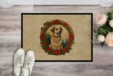 Decorate your space with Caroline's Treasures Christmas Anatolian Shepherd Dog artwork on a Doormat. Bring a bit of Winter into your home with a Winter Doormat. Welcome your guests in style with Caroline's Treasures Artwork Door Mat, designed to withstand almost any weather condition. This mat, measuring approximately 24 by 36 inches, is held together by durable black binding tape. Its top layer, composed of polyester felt, is dyed with the eye-catching image you see on the mat. A few layers below provide the mat with stability, while its rubber bottom is stamped to help prevent slipping and ensures safety. Caroline's Treasures mat works wonderfully as both an indoor or outdoor door mat. For cleaning, simply hose it off with water or use a power washer - no need for any cleaner that produces suds. Avoid scrubbing with a brush, instead, opt for the vacuum on floor setting. Designed manufactured and printed in the USA, this mat is a perfect addition to your porch, outdoor kitchen, entryway, or any indoor space. Its unique design makes it a charming decorative rug that greets your guests and adds a stylish touch to your home decor.