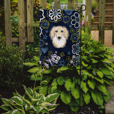Blue Flowers Longhair Creme Dachshund Flag Garden Size BB5063GF