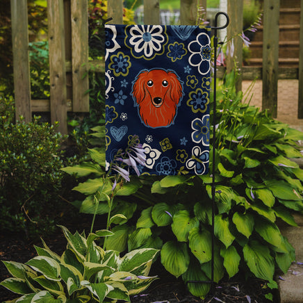 Blue Flowers Longhair Red Dachshund Flag Garden Size BB5065GF