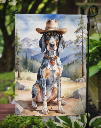 Welcome guests with a touch of rustic charm using this Outdoor Cowboy Garden Flag, perfect for creating a warm, Western-inspired entry. Made with durable, weather-resistant fabric, this Western Welcome Garden Flag holds up beautifully in any season, bringing a classic country feel to your yard or garden. With its vivid design, this Country-Themed Yard Flag makes an ideal addition to farmhouse or rustic decor. Whether for your home or as a thoughtful gift, it’s the perfect choice for outdoor decor enthusiasts.Decorate your space with Caroline's Treasures Bluetick Coonhound artwork on a Garden Flag. Enhance the beauty of your garden, patio, or yard with Caroline's Treasures Decorative Garden Flag, proudly made in the USA. Crafted from two pieces of thick, double-sided polyester fabric, this 2-ply garden flag is designed to withstand various weather conditions, making it water-resistant and weatherproof. Featuring correctly readable words on both sides, this garden flag offers a delightful visual experience from any angle. With its heavier weight, it stands out among other garden flags, ensuring stability and durability even in wind, rain, and snow. Measuring approximately 11 1/4 inches by 15 1/2 inches, this flag allows you to personalize your outdoor decor. It comes with a 1 1/2-inch sleeve sewn in, allowing easy attachment to any standard garden flag stand or garden size porch hanger (sold separately). Make a statement in your outdoor space with Caroline's Treasures Decorative Garden Flag, a vibrant and high-quality flag that adds color and personality to your surroundings. Proudly made in the USA, it's a symbol of quality craftsmanship and attention to detail.