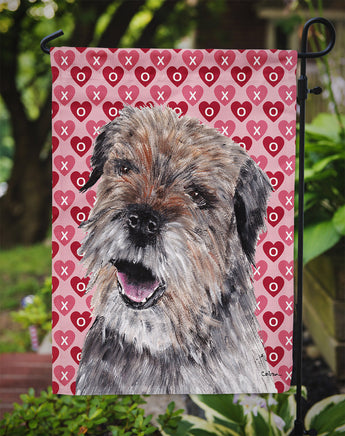 Decorate your space with Caroline's Treasures Valentine's Day Border Terrier artwork on a Garden Flag. Enhance the beauty of your garden, patio, or yard with Caroline's Treasures Decorative Garden Flag, proudly made in the USA. Crafted from two pieces of thick, double-sided polyester fabric, this 2-ply garden flag is designed to withstand various weather conditions, making it water-resistant and weatherproof. Featuring correctly readable words on both sides, this garden flag offers a delightful visual experience from any angle. With its heavier weight, it stands out among other garden flags, ensuring stability and durability even in wind, rain, and snow. Measuring approximately 11 1/4 inches by 15 1/2 inches, this flag allows you to personalize your outdoor decor. It comes with a 1 1/2-inch sleeve sewn in, allowing easy attachment to any standard garden flag stand or garden size porch hanger (sold separately). Make a statement in your outdoor space with Caroline's Treasures Decorative Garden Flag, a vibrant and high-quality flag that adds color and personality to your surroundings. Proudly made in the USA, it's a symbol of quality craftsmanship and attention to detail.