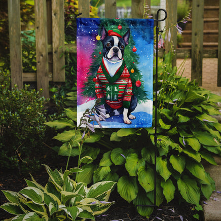Decorate your space with Caroline's Treasures Christmas Boston Terrier artwork on a Garden Flag. Enhance the beauty of your garden, patio, or yard with Caroline's Treasures Decorative Garden Flag, proudly made in the USA. Crafted from two pieces of thick, double-sided polyester fabric, this 2-ply garden flag is designed to withstand various weather conditions, making it water-resistant and weatherproof. Featuring correctly readable words on both sides, this garden flag offers a delightful visual experience from any angle. With its heavier weight, it stands out among other garden flags, ensuring stability and durability even in wind, rain, and snow. Measuring approximately 11 1/4 inches by 15 1/2 inches, this flag allows you to personalize your outdoor decor. It comes with a 1 1/2-inch sleeve sewn in, allowing easy attachment to any standard garden flag stand or garden size porch hanger (sold separately). Make a statement in your outdoor space with Caroline's Treasures Decorative Garden Flag, a vibrant and high-quality flag that adds color and personality to your surroundings. Proudly made in the USA, it's a symbol of quality craftsmanship and attention to detail.