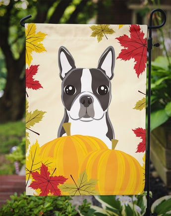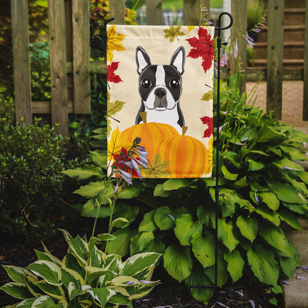 Decorate your space with Caroline's Treasures Thanksgiving Boston Terrier artwork on a Garden Flag. Enhance the beauty of your garden, patio, or yard with Caroline's Treasures Decorative Garden Flag, proudly made in the USA. Crafted from two pieces of thick, double-sided polyester fabric, this 2-ply garden flag is designed to withstand various weather conditions, making it water-resistant and weatherproof. Featuring correctly readable words on both sides, this garden flag offers a delightful visual experience from any angle. With its heavier weight, it stands out among other garden flags, ensuring stability and durability even in wind, rain, and snow. Measuring approximately 11 1/4 inches by 15 1/2 inches, this flag allows you to personalize your outdoor decor. It comes with a 1 1/2-inch sleeve sewn in, allowing easy attachment to any standard garden flag stand or garden size porch hanger (sold separately). Make a statement in your outdoor space with Caroline's Treasures Decorative Garden Flag, a vibrant and high-quality flag that adds color and personality to your surroundings. Proudly made in the USA, it's a symbol of quality craftsmanship and attention to detail.