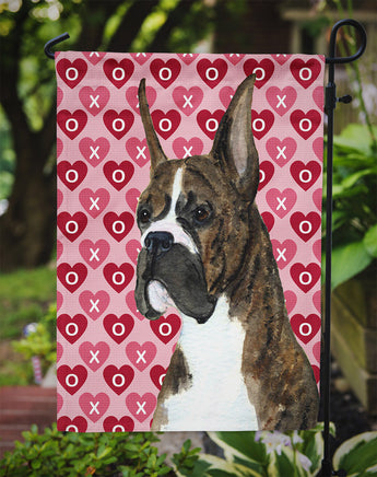 Decorate your space with Caroline's Treasures Valentine's Day Boxer artwork on a Garden Flag. Enhance the beauty of your garden, patio, or yard with Caroline's Treasures Decorative Garden Flag, proudly made in the USA. Crafted from two pieces of thick, double-sided polyester fabric, this 2-ply garden flag is designed to withstand various weather conditions, making it water-resistant and weatherproof. Featuring correctly readable words on both sides, this garden flag offers a delightful visual experience from any angle. With its heavier weight, it stands out among other garden flags, ensuring stability and durability even in wind, rain, and snow. Measuring approximately 11 1/4 inches by 15 1/2 inches, this flag allows you to personalize your outdoor decor. It comes with a 1 1/2-inch sleeve sewn in, allowing easy attachment to any standard garden flag stand or garden size porch hanger (sold separately). Make a statement in your outdoor space with Caroline's Treasures Decorative Garden Flag, a vibrant and high-quality flag that adds color and personality to your surroundings. Proudly made in the USA, it's a symbol of quality craftsmanship and attention to detail.