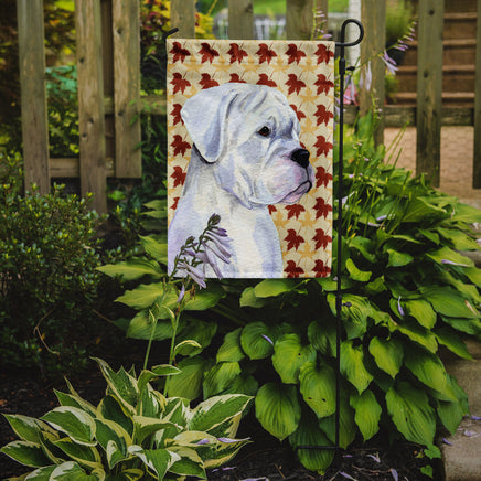 Boxer White Fall Leaves Portrait Flag Garden Size