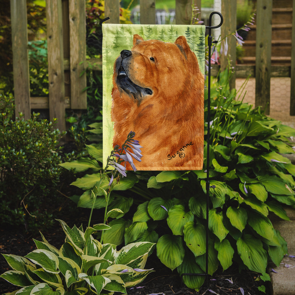 Decorate your space with Caroline's Treasures Chow Chow artwork on a Garden Flag. Enhance the beauty of your garden, patio, or yard with Caroline's Treasures Decorative Garden Flag, proudly made in the USA. Crafted from two pieces of thick, double-sided polyester fabric, this 2-ply garden flag is designed to withstand various weather conditions, making it water-resistant and weatherproof. Featuring correctly readable words on both sides, this garden flag offers a delightful visual experience from any angle. With its heavier weight, it stands out among other garden flags, ensuring stability and durability even in wind, rain, and snow. Measuring approximately 11 1/4 inches by 15 1/2 inches, this flag allows you to personalize your outdoor decor. It comes with a 1 1/2-inch sleeve sewn in, allowing easy attachment to any standard garden flag stand or garden size porch hanger (sold separately). Make a statement in your outdoor space with Caroline's Treasures Decorative Garden Flag, a vibrant and high-quality flag that adds color and personality to your surroundings. Proudly made in the USA, it's a symbol of quality craftsmanship and attention to detail.