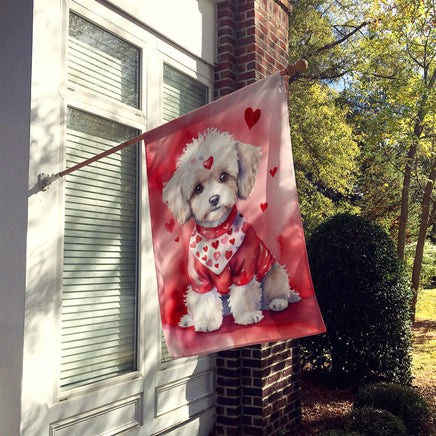 Decorate your space with Caroline's Treasures Valentine's Day Maltipoo artwork on a Large Flag. Presenting Caroline's Treasures Heavy Duty Polyester House Size Decorative Sleeve Pole Flag, a vibrant addition to enhance the aesthetic appeal of your home. This large decorative flag, measuring approximately 28 x 40 inches, offers ample coverage and visibility. Each flag is meticulously sewn and made individually, ensuring a unique piece that may slightly vary in size. It's a sleeve pole flag, designed to fit a standard decorative flag pole effortlessly. Please note that the flag pole and bracket are not included and should be purchased separately. What sets Caroline's Treasures flag apart is its dual-sided print. The design is mirrored on both sides of the fabric, allowing for uniform visibility regardless of the angle. To ensure lasting vibrancy and durability, the dyes are heat-set into the fabric. This ensures your flag remains bright and captivating through various weather conditions. Elevate the look of your home with Caroline's Treasures Heavy Duty Polyester House Size Decorative Sleeve Pole Flag!