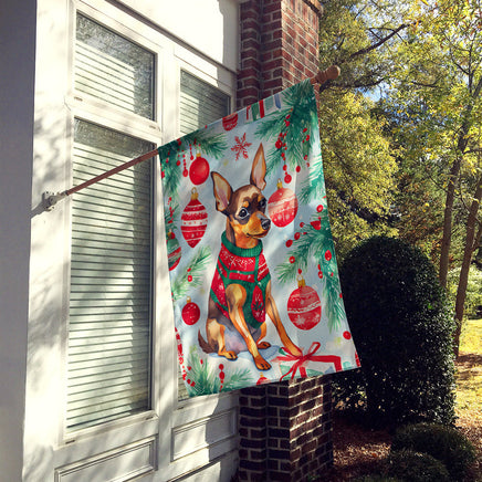 Decorate your space with Caroline's Treasures Christmas Miniature Pinscher artwork on a Large Flag. Presenting Caroline's Treasures Heavy Duty Polyester House Size Decorative Sleeve Pole Flag, a vibrant addition to enhance the aesthetic appeal of your home. This large decorative flag, measuring approximately 28 x 40 inches, offers ample coverage and visibility. Each flag is meticulously sewn and made individually, ensuring a unique piece that may slightly vary in size. It's a sleeve pole flag, designed to fit a standard decorative flag pole effortlessly. Please note that the flag pole and bracket are not included and should be purchased separately. What sets Caroline's Treasures flag apart is its dual-sided print. The design is mirrored on both sides of the fabric, allowing for uniform visibility regardless of the angle. To ensure lasting vibrancy and durability, the dyes are heat-set into the fabric. This ensures your flag remains bright and captivating through various weather conditions. Elevate the look of your home with Caroline's Treasures Heavy Duty Polyester House Size Decorative Sleeve Pole Flag!