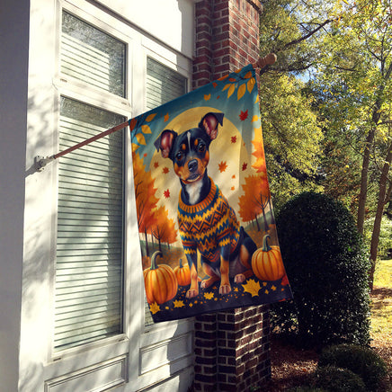 Decorate your space with Caroline's Treasures Miniature Pinscher artwork on a Large Flag. Bring a bit of Fall into your home with a Fall Large Flag. Presenting Caroline's Treasures Heavy Duty Polyester House Size Decorative Sleeve Pole Flag, a vibrant addition to enhance the aesthetic appeal of your home. This large decorative flag, measuring approximately 28 x 40 inches, offers ample coverage and visibility. Each flag is meticulously sewn and made individually, ensuring a unique piece that may slightly vary in size. It's a sleeve pole flag, designed to fit a standard decorative flag pole effortlessly. Please note that the flag pole and bracket are not included and should be purchased separately. What sets Caroline's Treasures flag apart is its dual-sided print. The design is mirrored on both sides of the fabric, allowing for uniform visibility regardless of the angle. To ensure lasting vibrancy and durability, the dyes are heat-set into the fabric. This ensures your flag remains bright and captivating through various weather conditions. Elevate the look of your home with Caroline's Treasures Heavy Duty Polyester House Size Decorative Sleeve Pole Flag!
