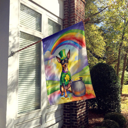 Decorate your space with Caroline's Treasures St Patrick's Day Miniature Pinscher artwork on a Large Flag. Presenting Caroline's Treasures Heavy Duty Polyester House Size Decorative Sleeve Pole Flag, a vibrant addition to enhance the aesthetic appeal of your home. This large decorative flag, measuring approximately 28 x 40 inches, offers ample coverage and visibility. Each flag is meticulously sewn and made individually, ensuring a unique piece that may slightly vary in size. It's a sleeve pole flag, designed to fit a standard decorative flag pole effortlessly. Please note that the flag pole and bracket are not included and should be purchased separately. What sets Caroline's Treasures flag apart is its dual-sided print. The design is mirrored on both sides of the fabric, allowing for uniform visibility regardless of the angle. To ensure lasting vibrancy and durability, the dyes are heat-set into the fabric. This ensures your flag remains bright and captivating through various weather conditions. Elevate the look of your home with Caroline's Treasures Heavy Duty Polyester House Size Decorative Sleeve Pole Flag!