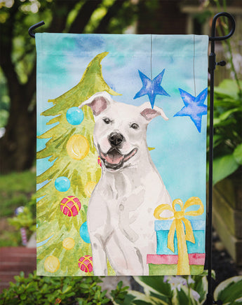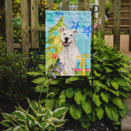 White Staffie Bull Terrier Christmas Flag Garden Size BB9396GF