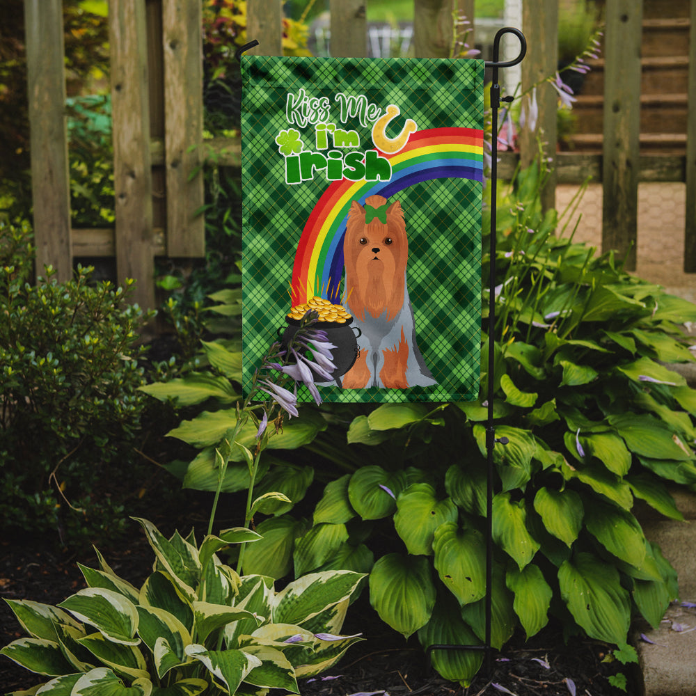Decorate your space with Caroline's Treasures St Patrick's Day Yorkshire Terrier artwork on a Garden Flag. Enhance the beauty of your garden, patio, or yard with Caroline's Treasures Decorative Garden Flag, proudly made in the USA. Crafted from two pieces of thick, double-sided polyester fabric, this 2-ply garden flag is designed to withstand various weather conditions, making it water-resistant and weatherproof. Featuring correctly readable words on both sides, this garden flag offers a delightful visual experience from any angle. With its heavier weight, it stands out among other garden flags, ensuring stability and durability even in wind, rain, and snow. Measuring approximately 11 1/4 inches by 15 1/2 inches, this flag allows you to personalize your outdoor decor. It comes with a 1 1/2-inch sleeve sewn in, allowing easy attachment to any standard garden flag stand or garden size porch hanger (sold separately). Make a statement in your outdoor space with Caroline's Treasures Decorative Garden Flag, a vibrant and high-quality flag that adds color and personality to your surroundings. Proudly made in the USA, it's a symbol of quality craftsmanship and attention to detail.